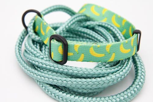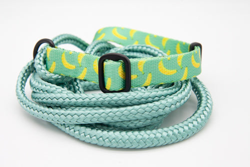 Ingår i vår nya serie koppel som tillverkas av ett ihåligt polyproplynrep som på samma gång är både lätt och slitstarkt. Repet är flätat utan kärna – vilket gör det platt – och är ca 8 mm brett och 3 mm tjockt. Kopplets ändar/fästpunkter är alla splitsade vilket gör att det varken har sömmar eller klämmor. Halsbandet är tillverkat av 15 mm brett svart nylonband och kan anpassas i storlek allt eftersom valpen växer. Halsbandets diameter är ca 20-30 cm. Kopplet är 180 cm långt.